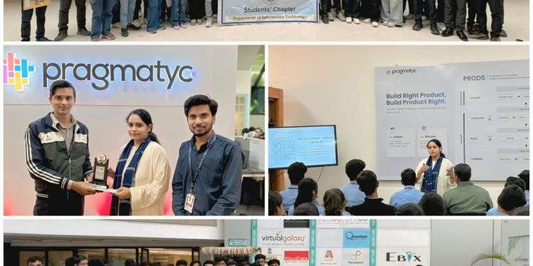 The experts also emphasized on the importance of professional communication, teamwork, and collaboration in delivering successful software projects. Students gained valuable knowledge about project management and collaboration tools such as Jira, Slack, and Git, which are widely used in the IT industry. Information regarding internship opportunities in Development, Artificial Intelligence and Quality Assurance domains at Pragmatyc was also shared with the students.