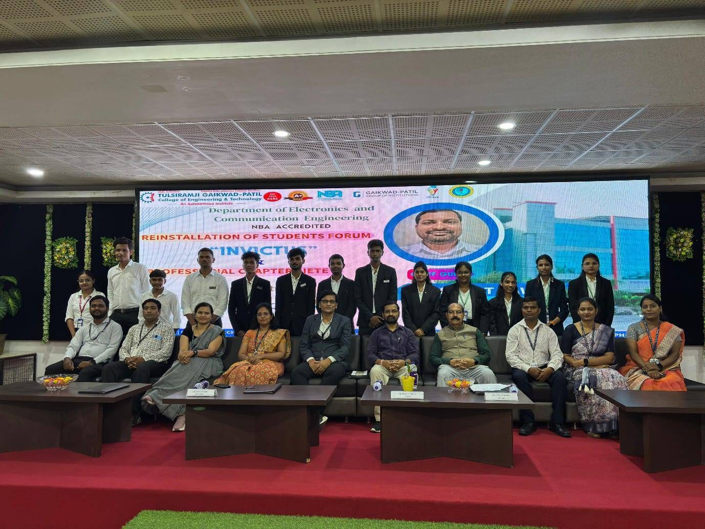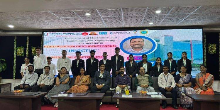 The Department of Electronics and Communication Engineering (ECE) at Tulsiramji Gaikwad Patil College of Engineering and Technology (TGPCET) successfully organized the reinstallation ceremony of its student forum “INVICTUS” on July 16, 2025, at the college’s prestigious JRD Tata Hall.