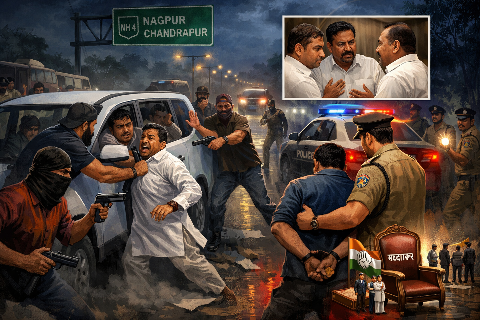 चंद्रपूर महानगरपालिकेतील सत्तासंघर्ष आता थेट गुन्हेगारी पातळीवर पोहोचल्याचे धक्कादायक चित्र समोर आले आहे. काँग्रेसचे नेते आमदार विजय वडेट्टीवार समर्थक गटातील नगरसेवकांच्या वाहनावर वर्धा जिल्ह्यातील नागपूर राष्ट्रीय महामार्गावर पहाटेच्या सुमारास हल्ला करून अपहरणाचा प्रयत्न झाल्याची गंभीर घटना घडली. या घटनेमुळे राज्याच्या राजकारणात मोठी खळबळ उडाली आहे.
